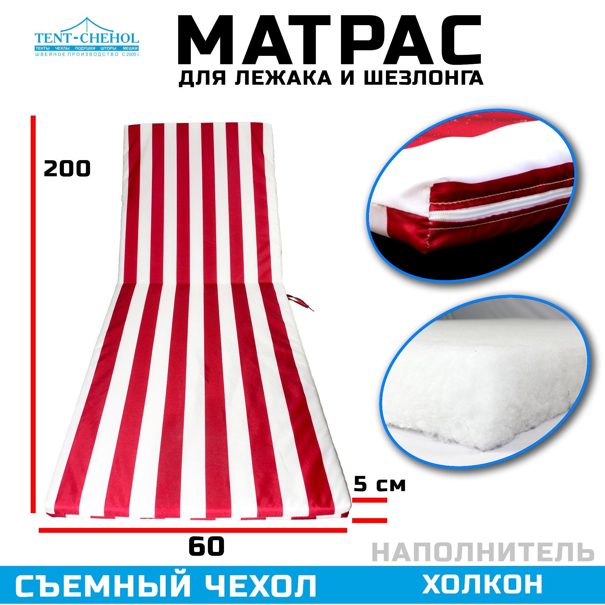 Он имеет длину 200 см, ширину 60 см и высоту 5 см, что идеально подходит для большинства шезлонгов. Наполнитель из холкона обеспечивает мягкую, но поддерживающую поверхность, которая будет поддерживать вашу спину и предотвращать боли в теле.