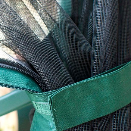 Антимоскитное полотно крепится к каркасу шатра с помощью надежной застежки-молнии.