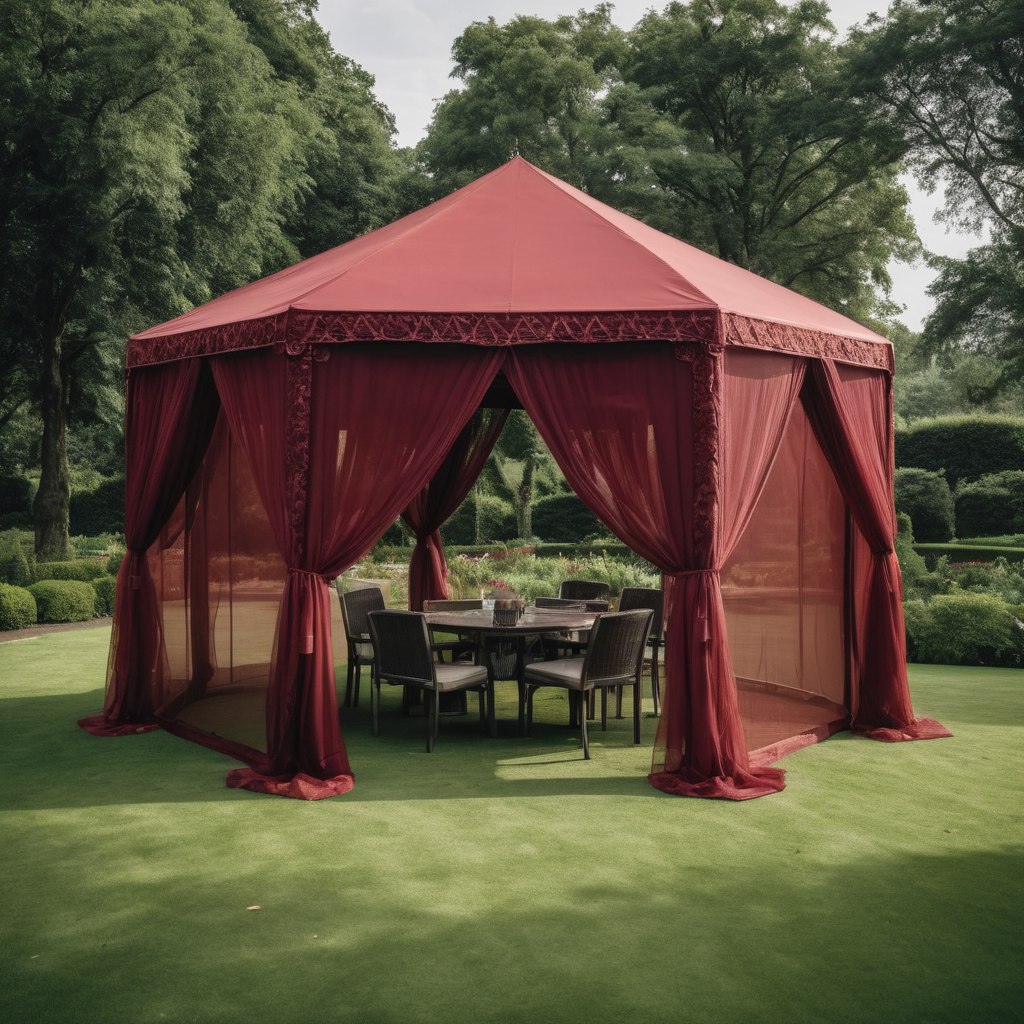 Бордовые москитные сетки для уличной шестигранной беседки (шатра)