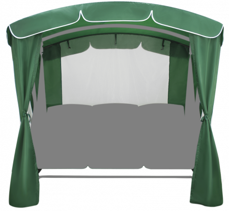 Мы предлагаем вам приобрести тент для трёхместных качелей, у данного тента зелёный цвет, а его вес составляет 0,8 кг. Предназначен данный тент для размеров по каркасу крыши 212 х 124 см. Изготовлен тент из такой ткани, как Оксфорд, она совершенно не пропускает воду. Тент прикрепляется к качелям при помощи продольных и поперечных кулисок, его легко очищать, он очень прочный.